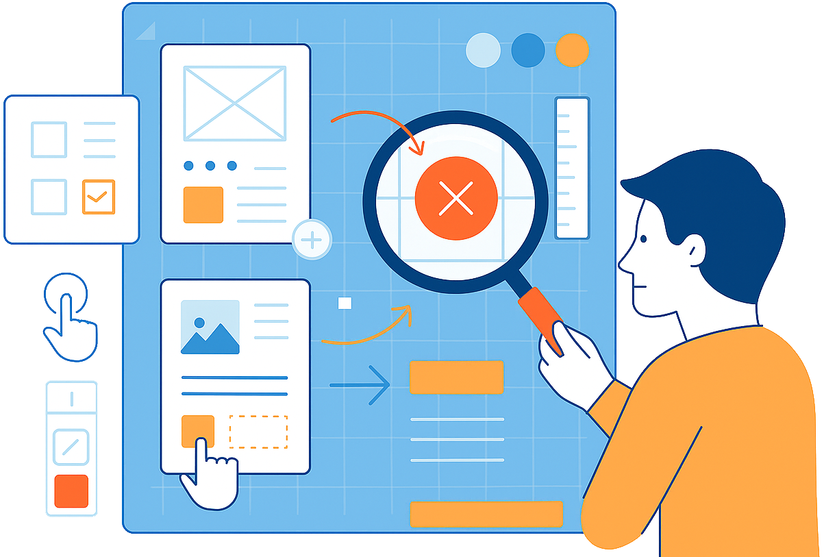 Visualize layouts and user flows with low- and high-fidelity wireframes. Low-fidelity wireframes catch early usability issues and allow quick iterations, while high-fidelity wireframes provide realistic designs for precise testing and validation.